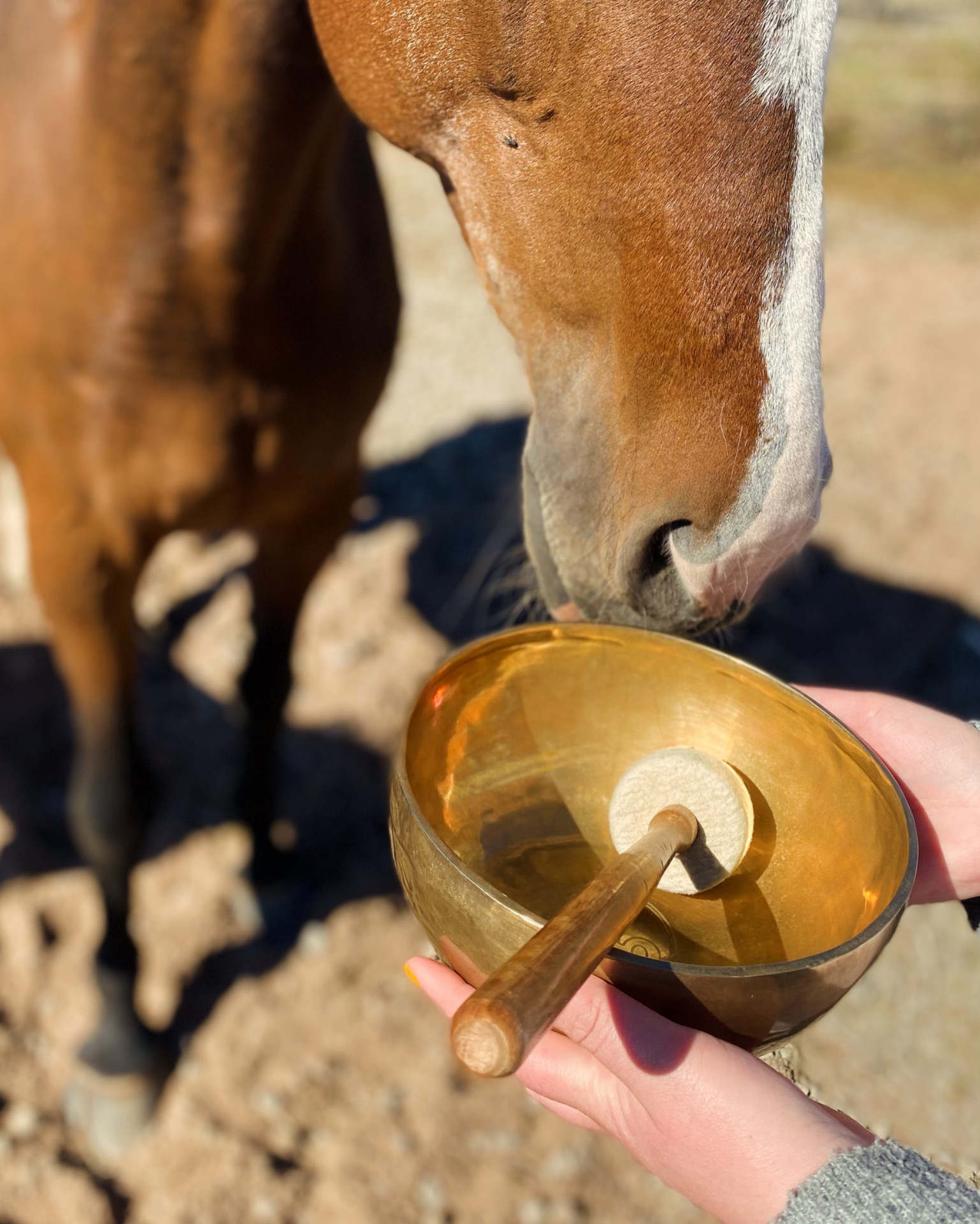 Äänimaljarentoutus hevosten kanssa toteutetaan kelien salliessa ulkona tai sisällä kodissamme. Suosittelen ottamaan oman viltin sekä alustan mukaan. Ensin soitetaan äänimaljarentoutus ihmisille ja sen jälkeen siirrymme soittamaan äänimaljoja talliin tai tarhaan hevosille.